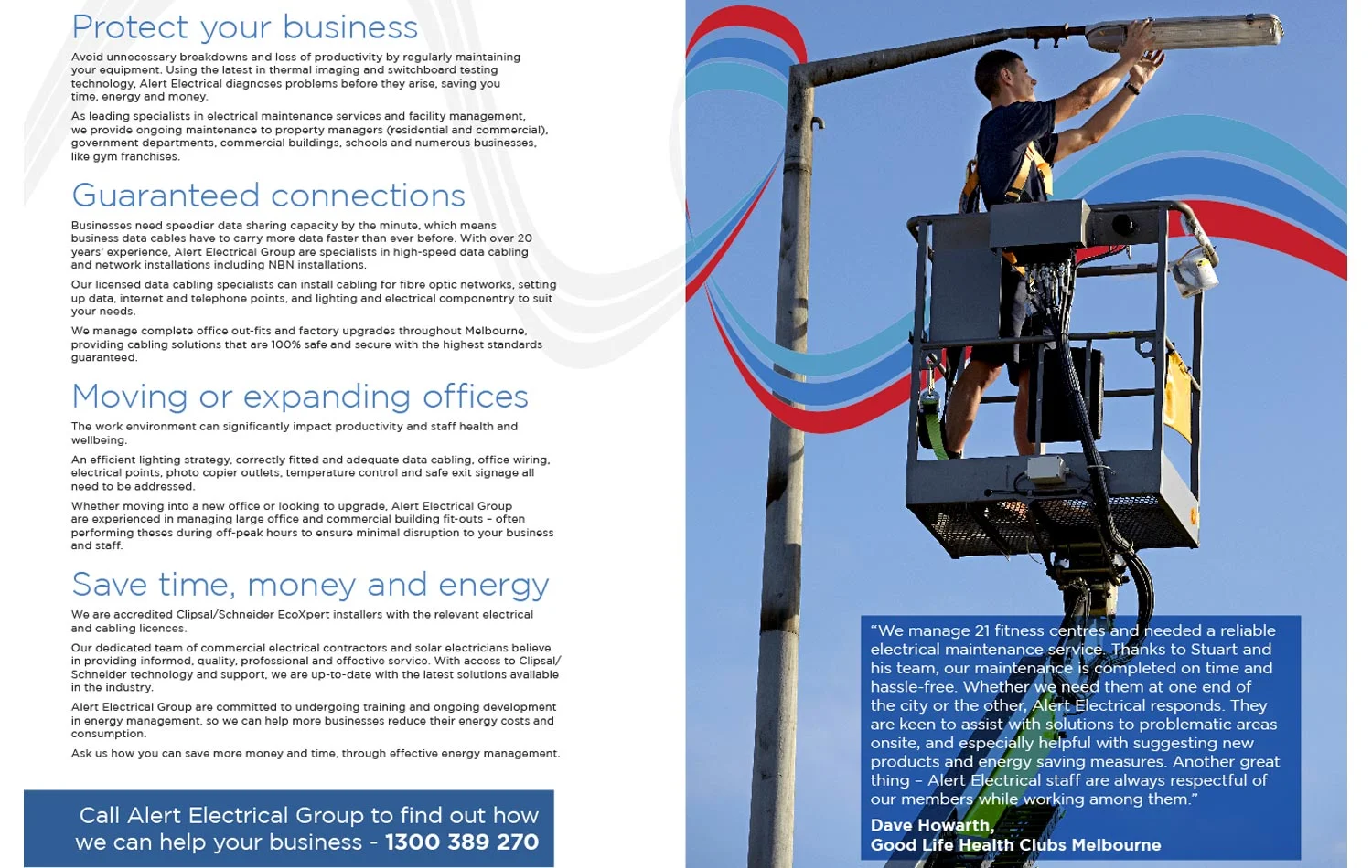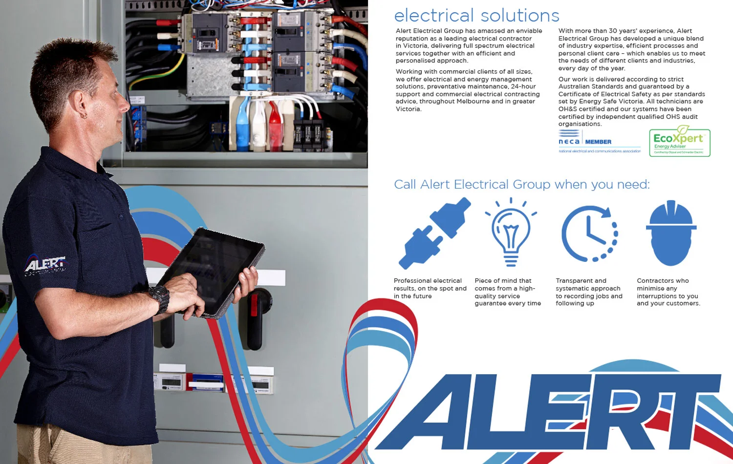 ALERT electrical Brochure Designed by Curtis Miller of Fenchurch Studios, Melbourne
